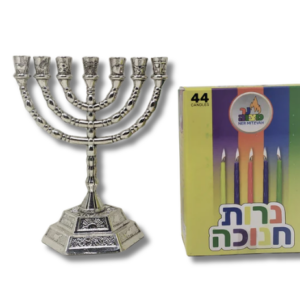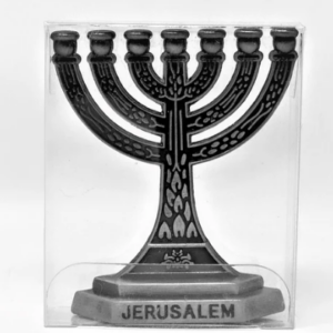Menora 7 brazos 12 tribus Tiferet Yerushalaim 27 cm Blanca