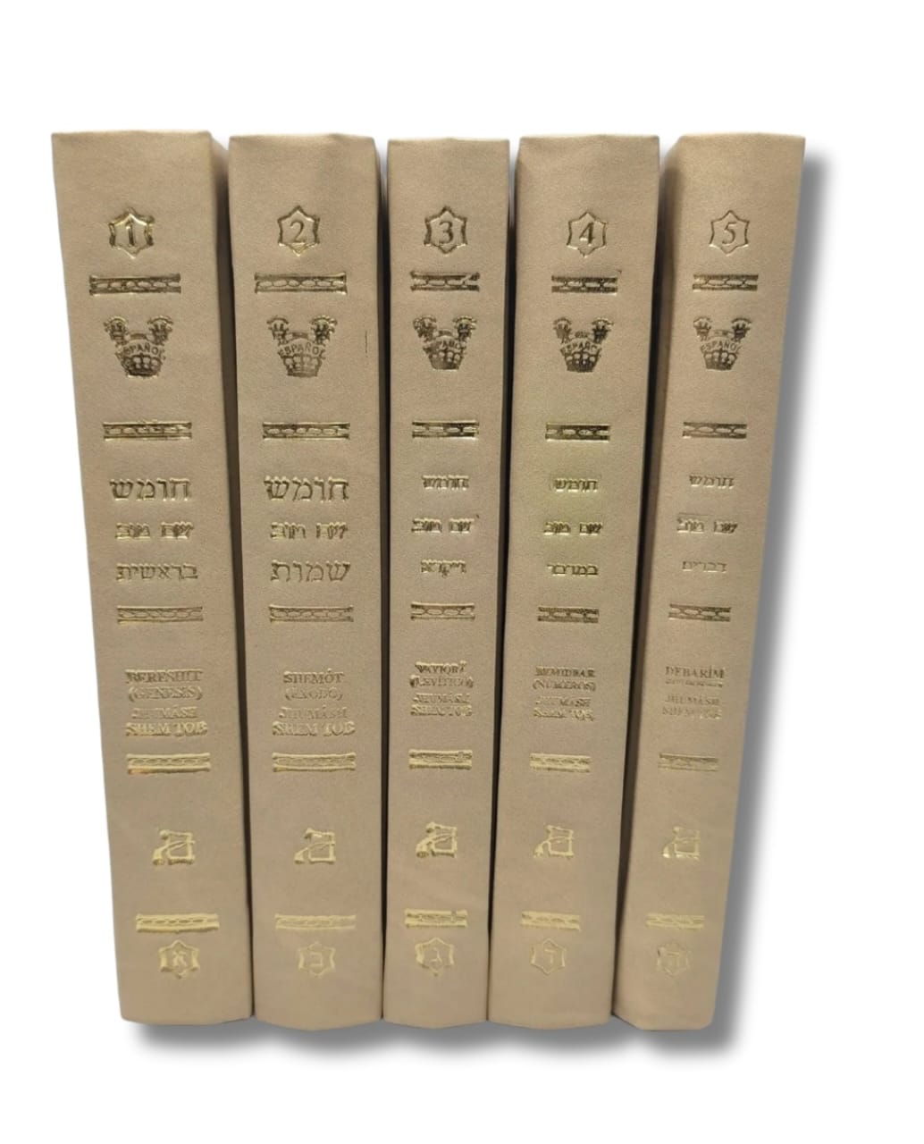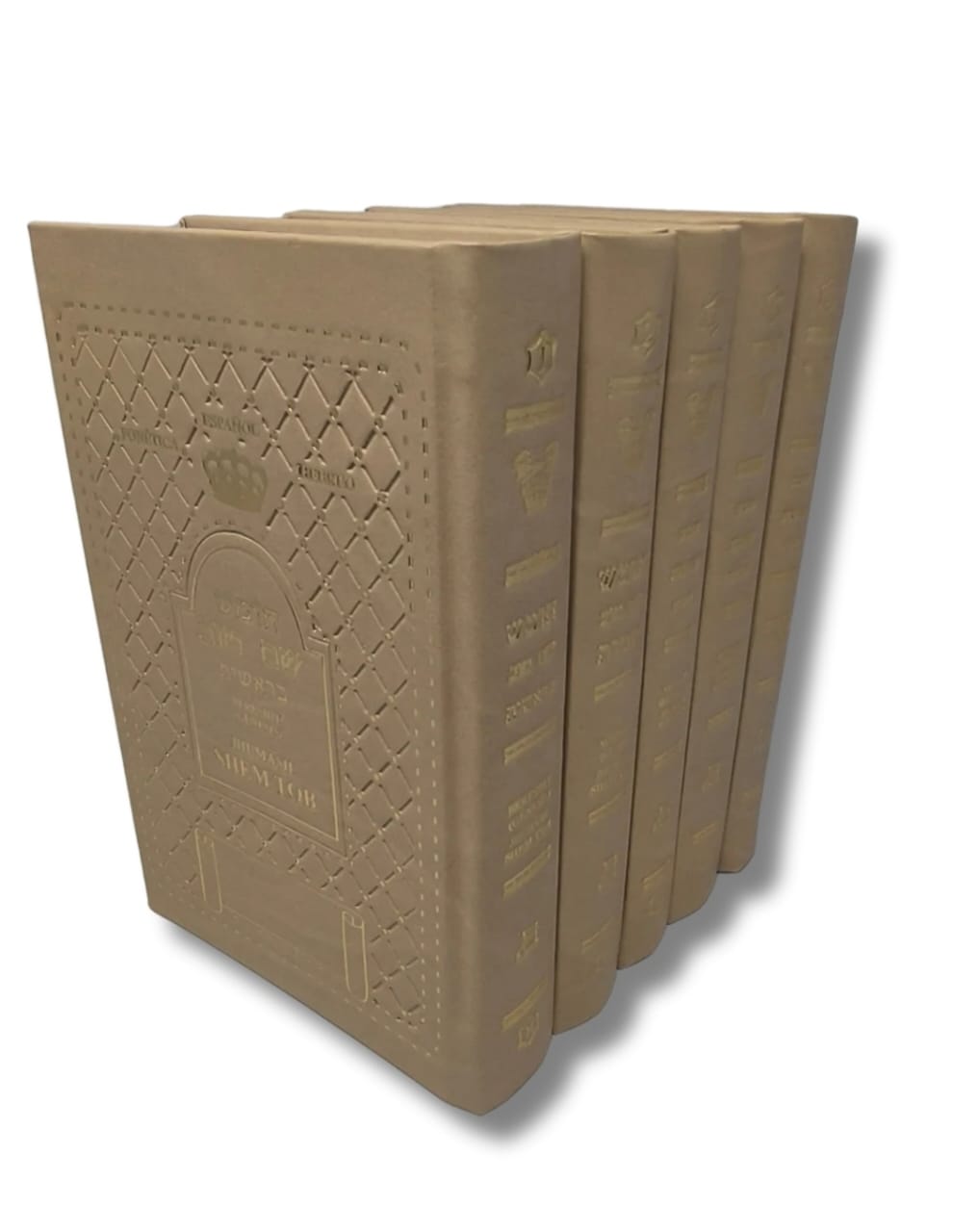 La Torá editorial Shem tob (los 5 Libros de Moisés). Contiene explicaciones y comentarios de forma clara que facilita su comprensión. Cada libro de la Torá esta seccionado por la perasha de la semana, con taamin (Notas musicales para cantar la Torá). Además, contiene una síntesis en cada una de las secciones para la explicación de los temas tratados en cada perasha. Versión en 5 tomos en hebreo, fonética y español, interlineal.